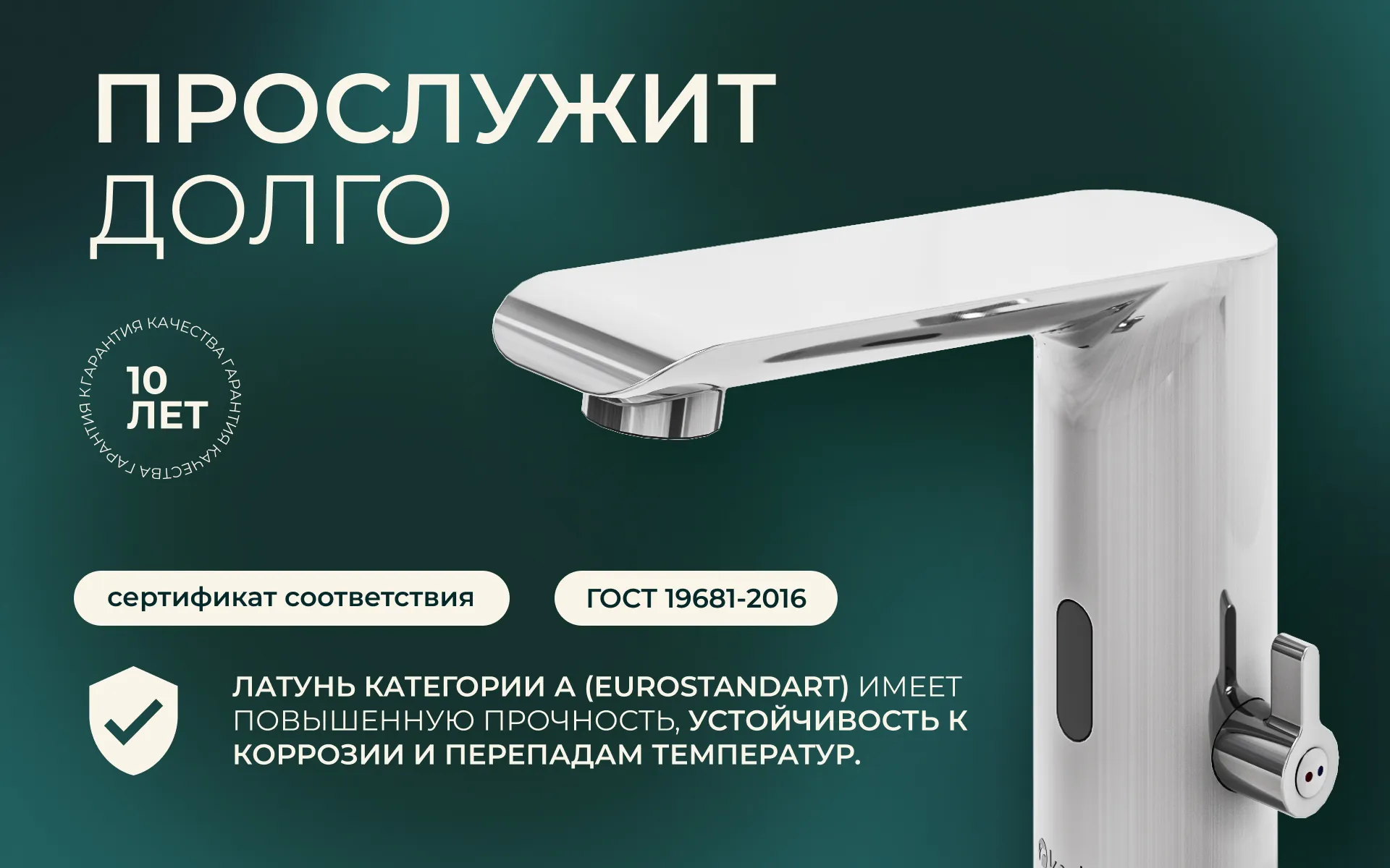 - Гарантия на корпус смесителя: 10 лет