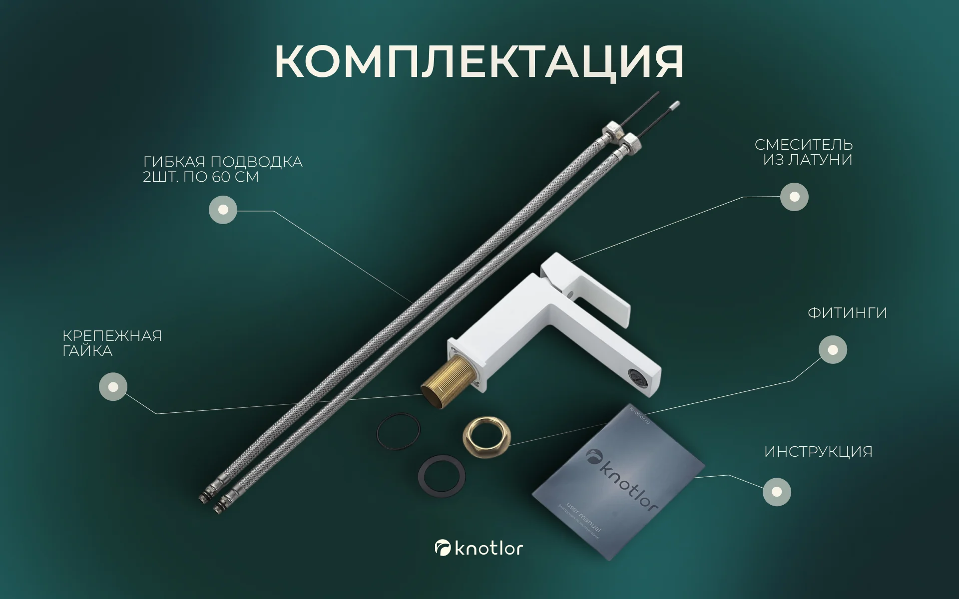 - Крепеж: Крепежная гайка, резиновые уплотнитель и прокладка