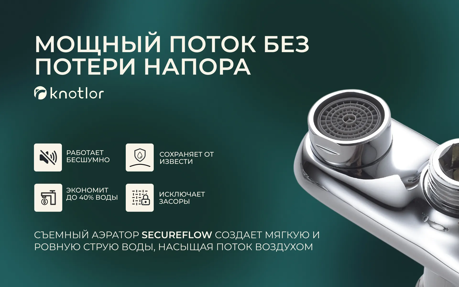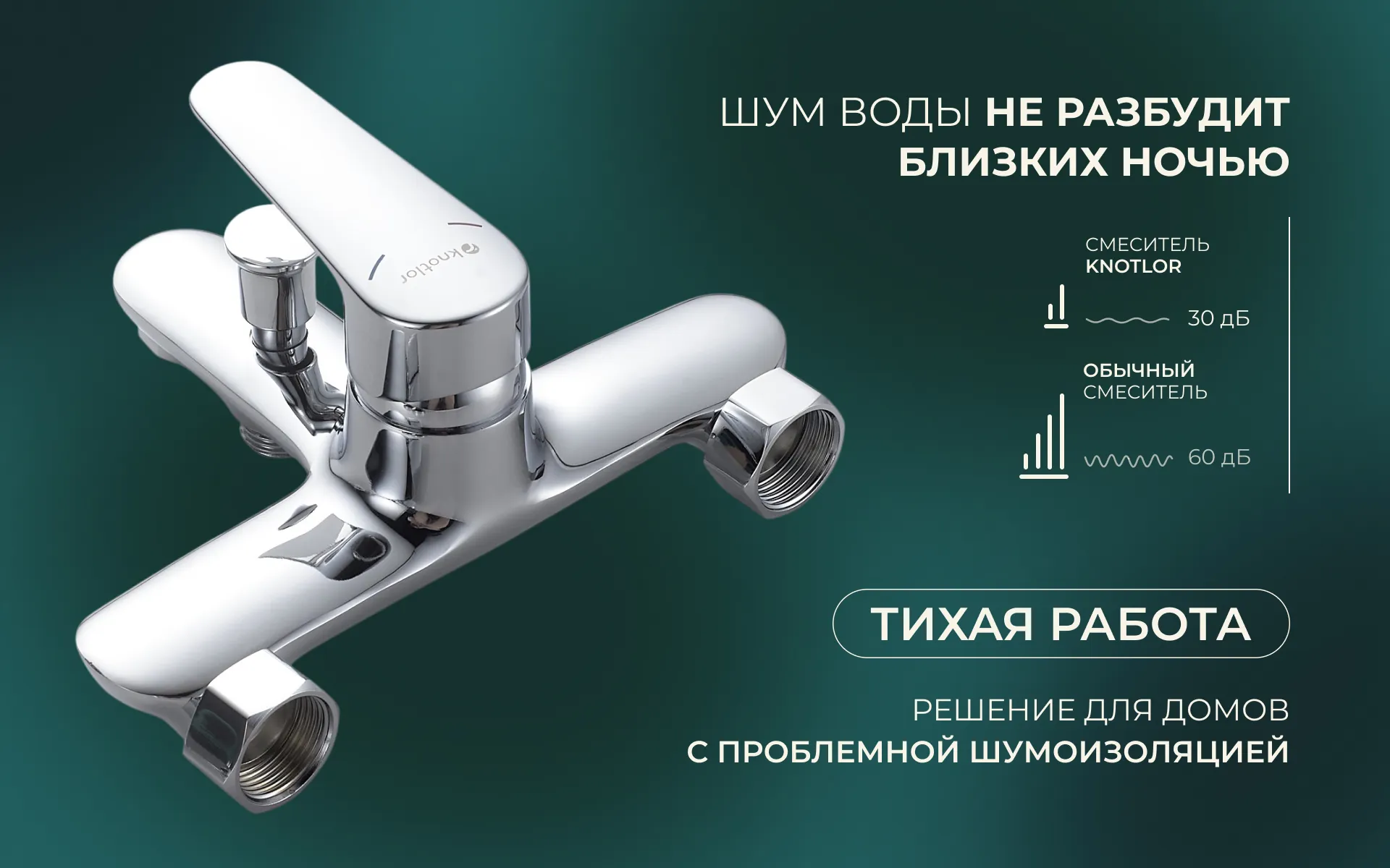 Смеситель понравился тем, что тихо работает, никаких резких звуков при включении. Лейка лёгкая, но прочная, удобно держать в руке. И главное ничего не протекает, даже после недели постоянного использования.Рекомендую продавца