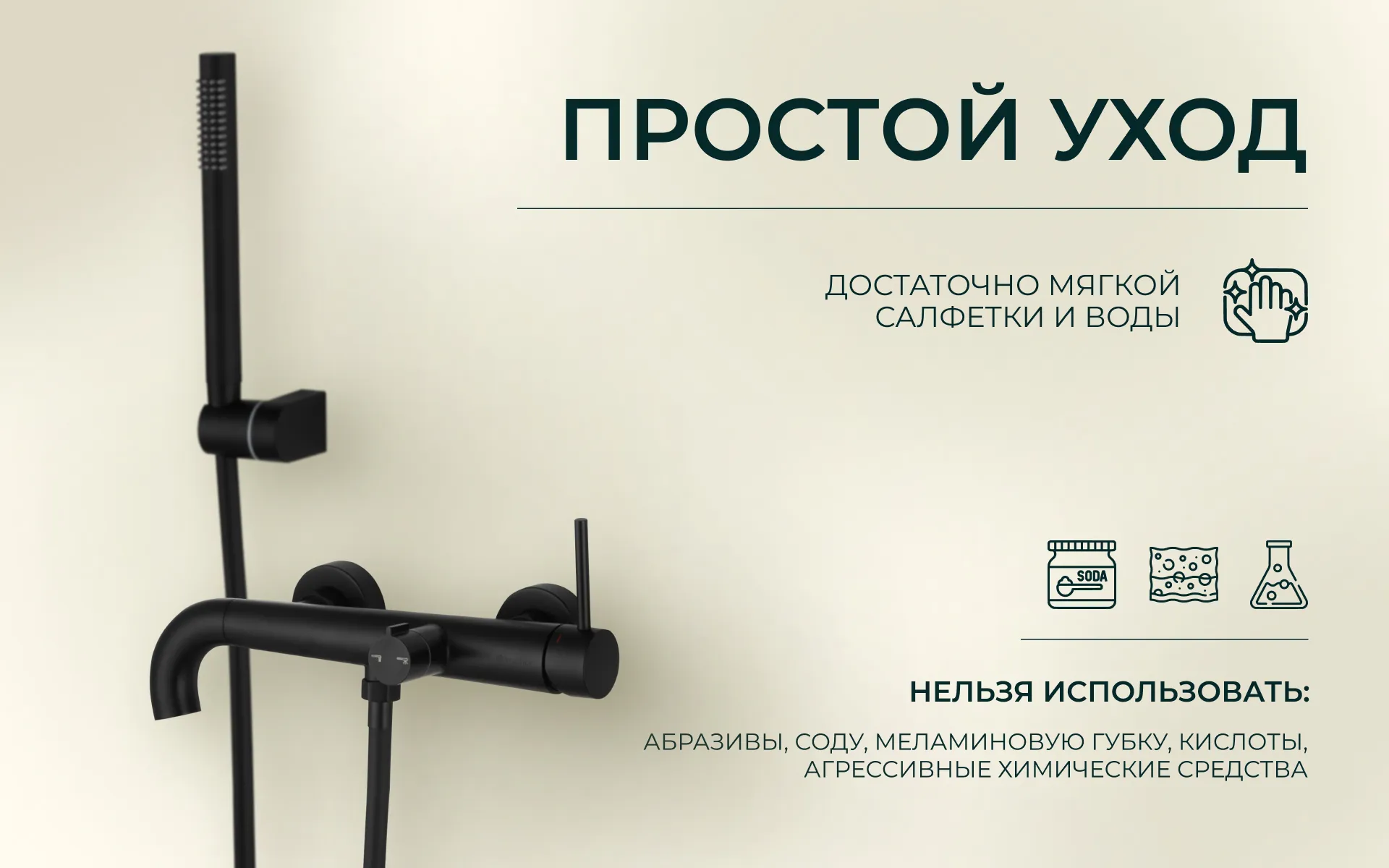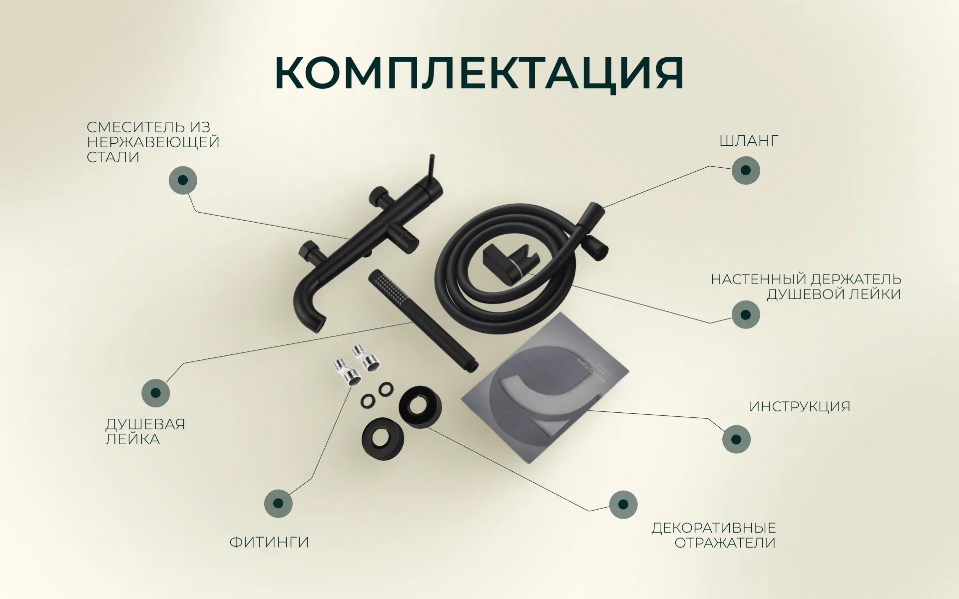 - Крепеж: Комплект эксцентриков из нержавеющей стали, резиновые уплотнители, держатель ручной лейки