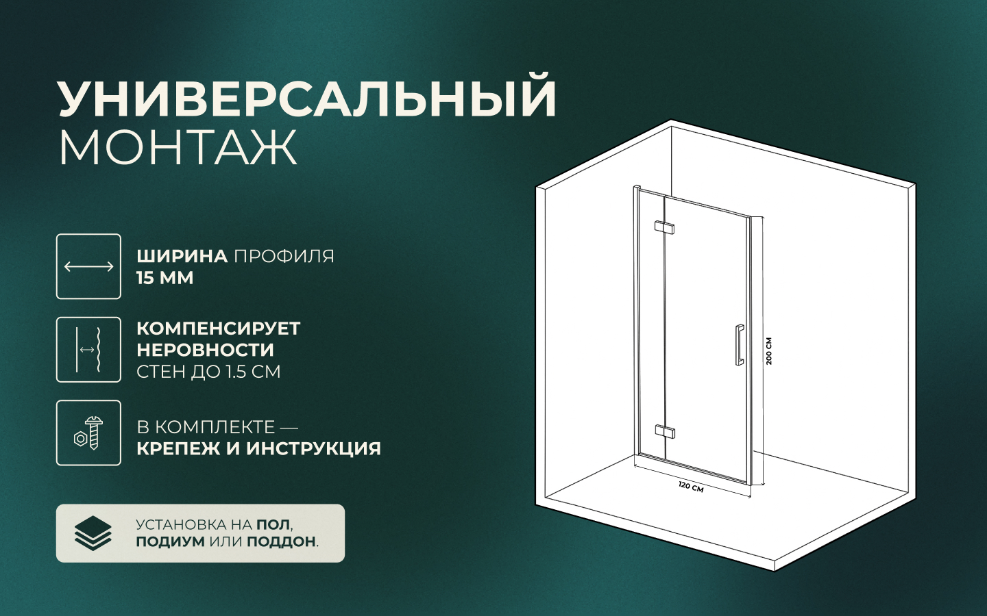- Монтаж: пол, подиум, поддон