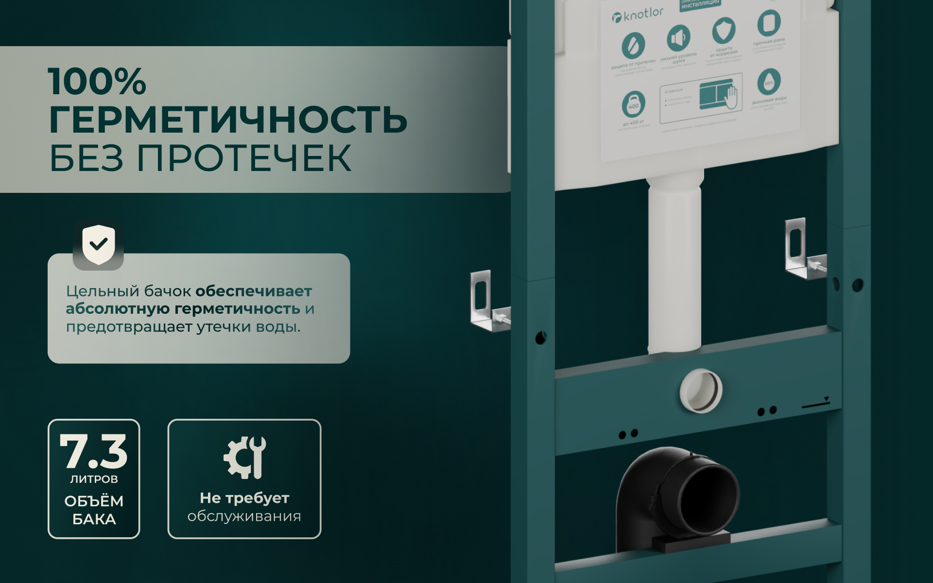 Брал Knotlor по совету сантехника. Действительно, установка оказалась быстрой, вся конструкция интуитивно понятная. Бачок хорошо изолирован, конденсата не бывает, и шум минимальный. Надёжная вещь, не хуже европейских аналогов, но по цене приятнее.