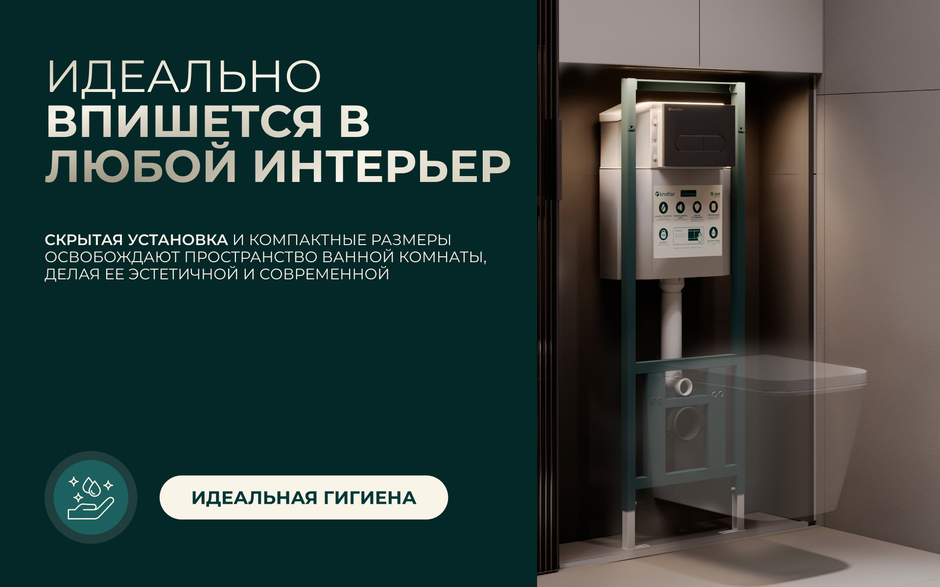 Изначально переживала, что инсталляция займёт много места, но у Knotlor очень компактная конструкция. В итоге в санузле даже стало визуально просторнее. Всё работает бесшумно, ничего не протекает. Монтажник сказал, что таких надёжных рам не так много на рынке.
