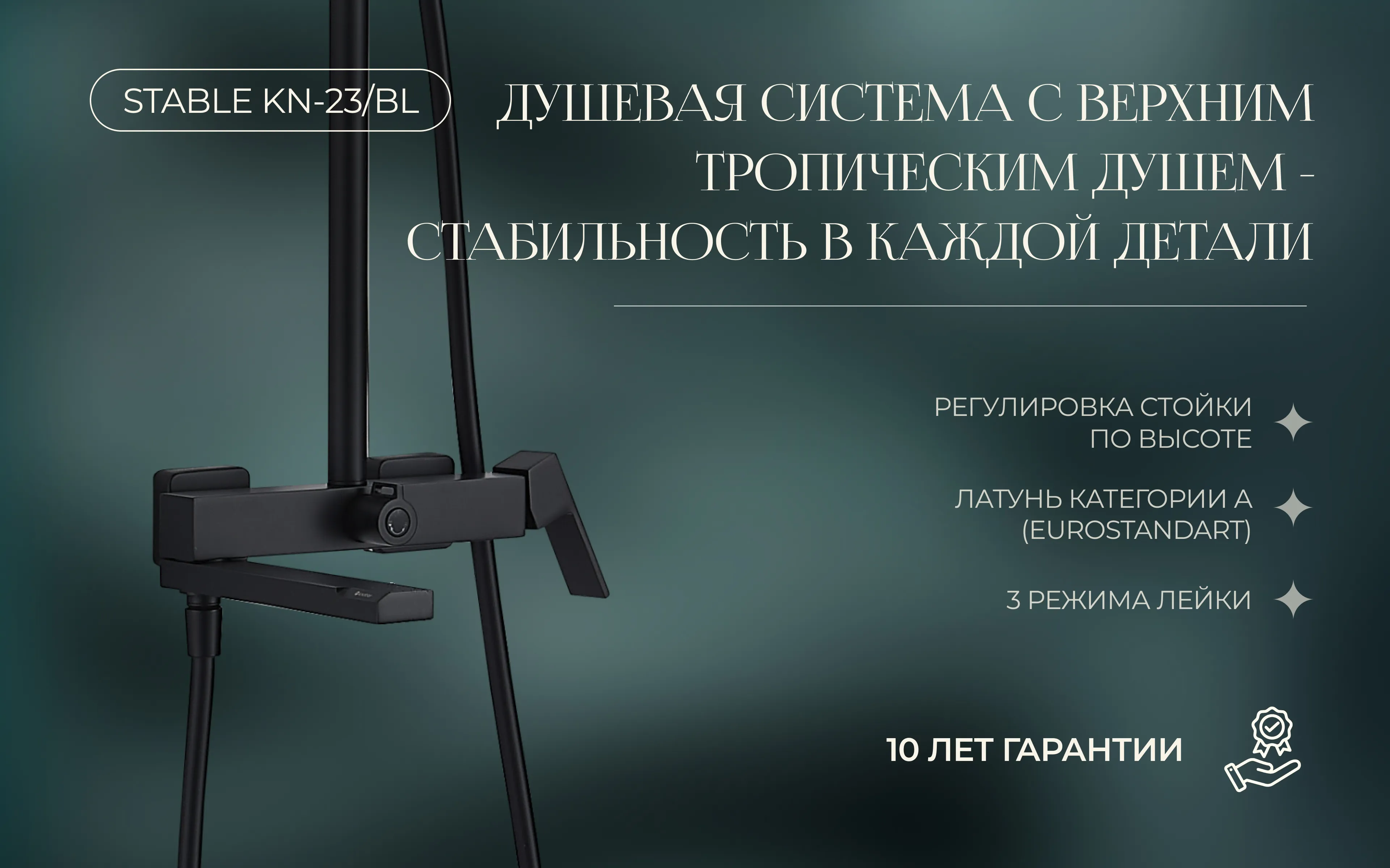 Душевая система с верхним тропическим душем KN-23/BL
