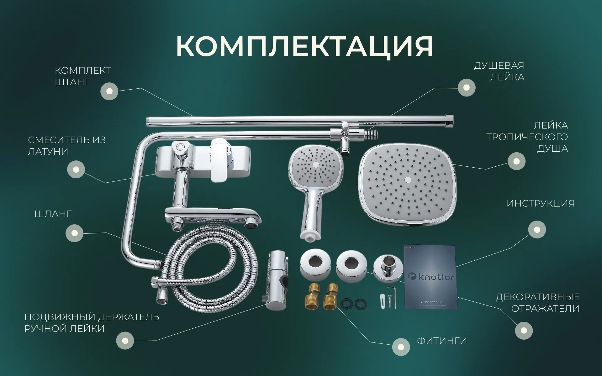 Душевая система с верхним тропическим душем KN-43