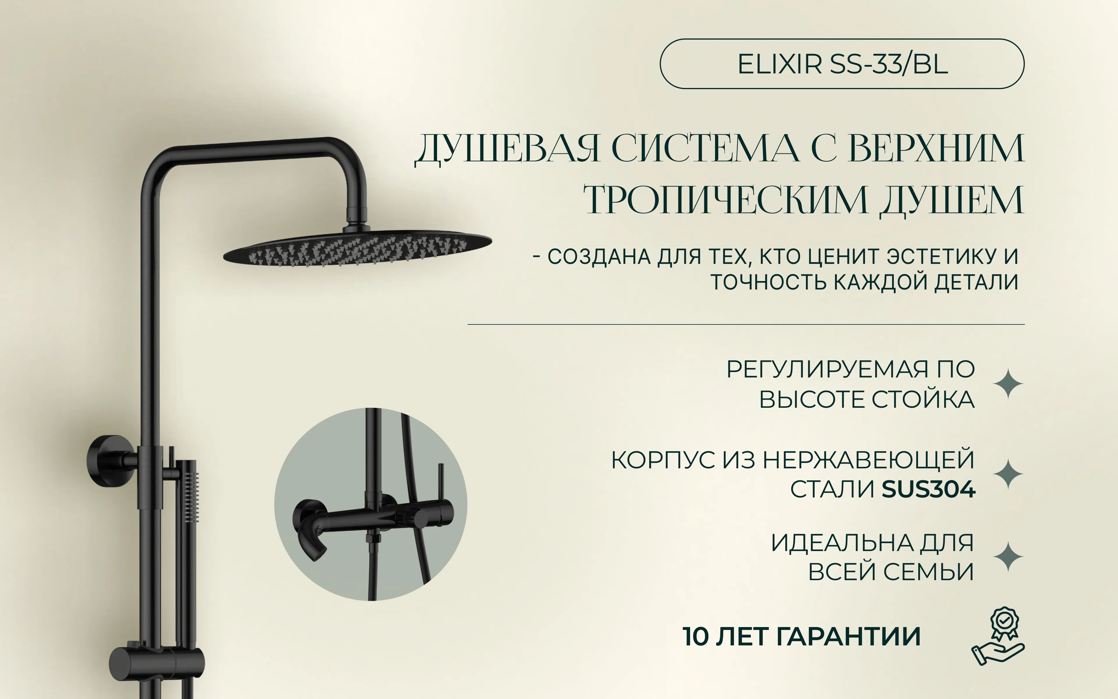 Душевая система с верхним тропическим душем SS-33/BL