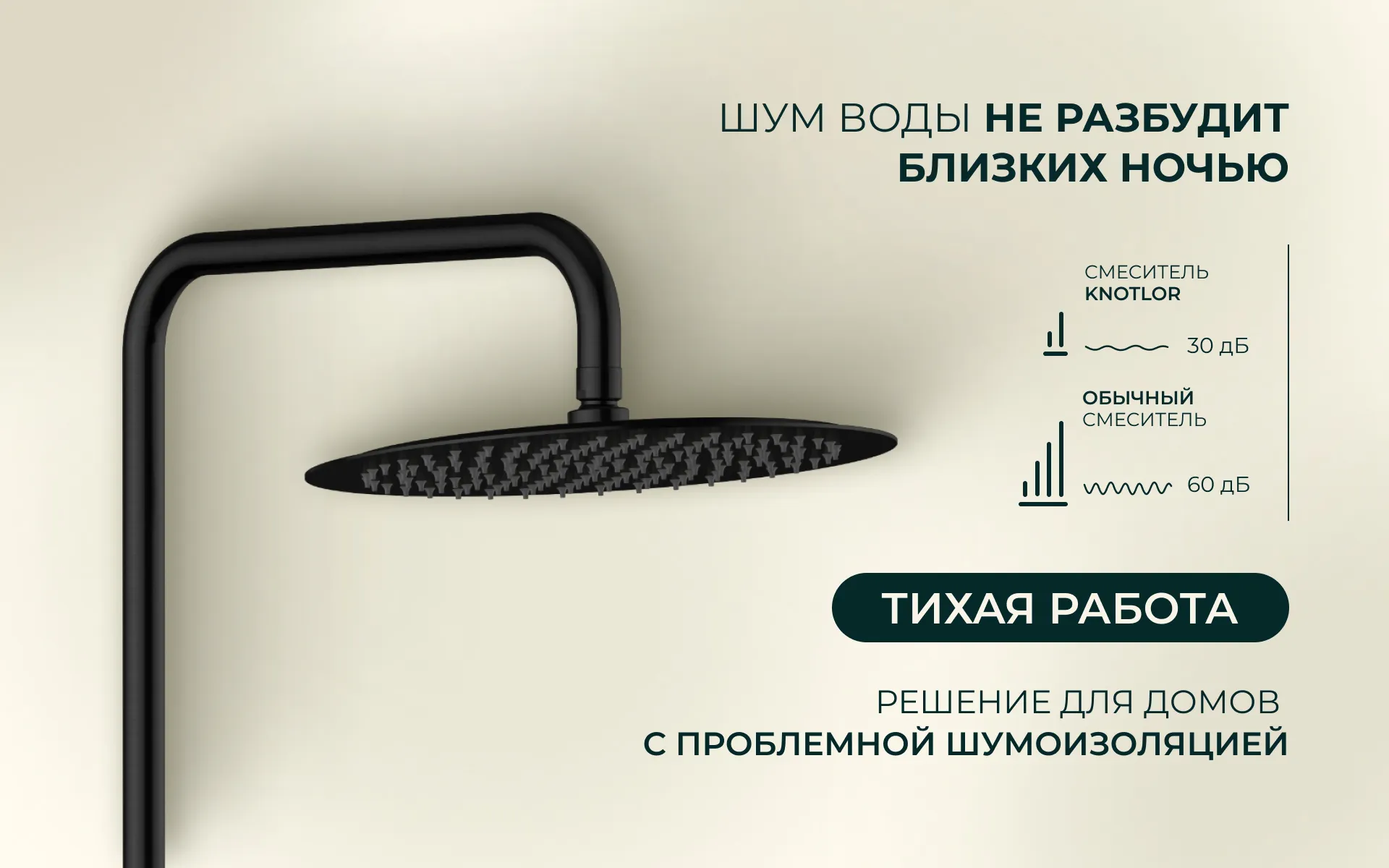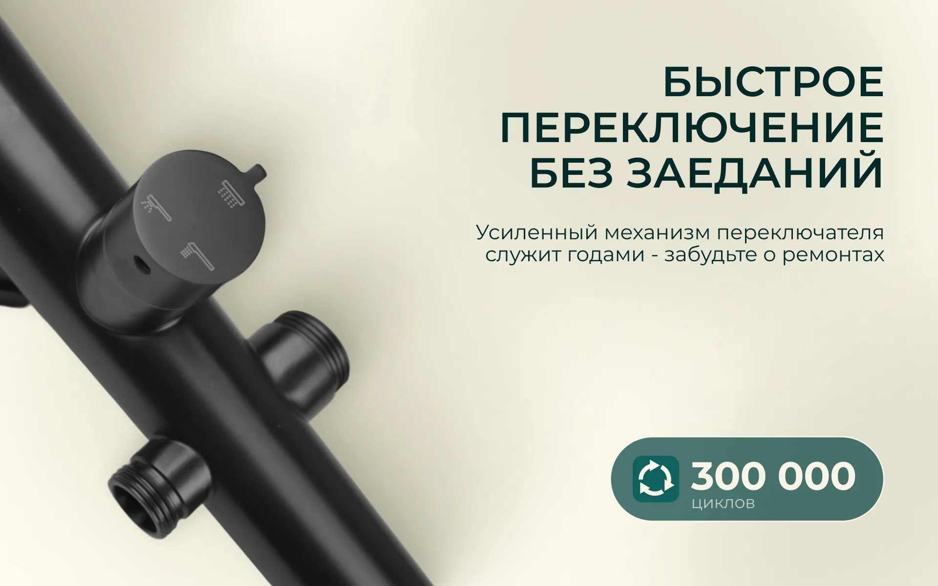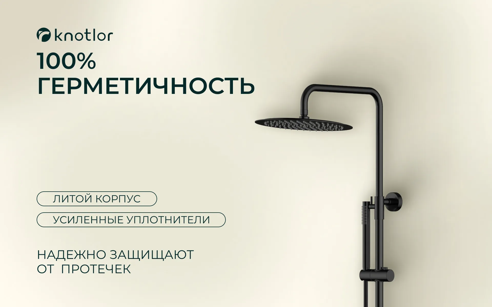 Все работает отлично: и верхний душ, и ручной - удобно переключать, напор хороший. Сама система прочная, крепления надежные. Пользуемся всей семьей уже третий год, никаких проблем.