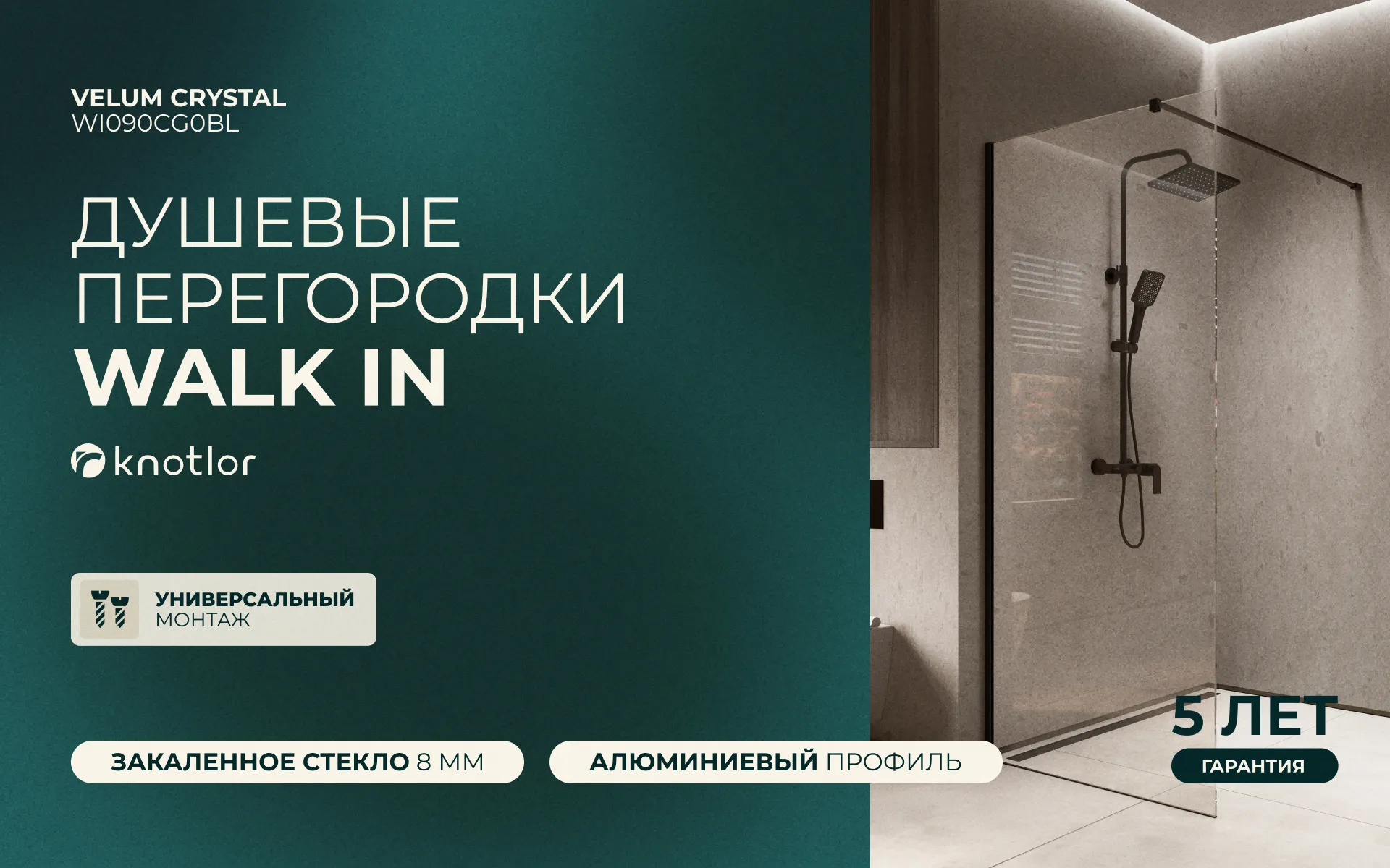 Перегородка душевая Walk In WI090CG0BL