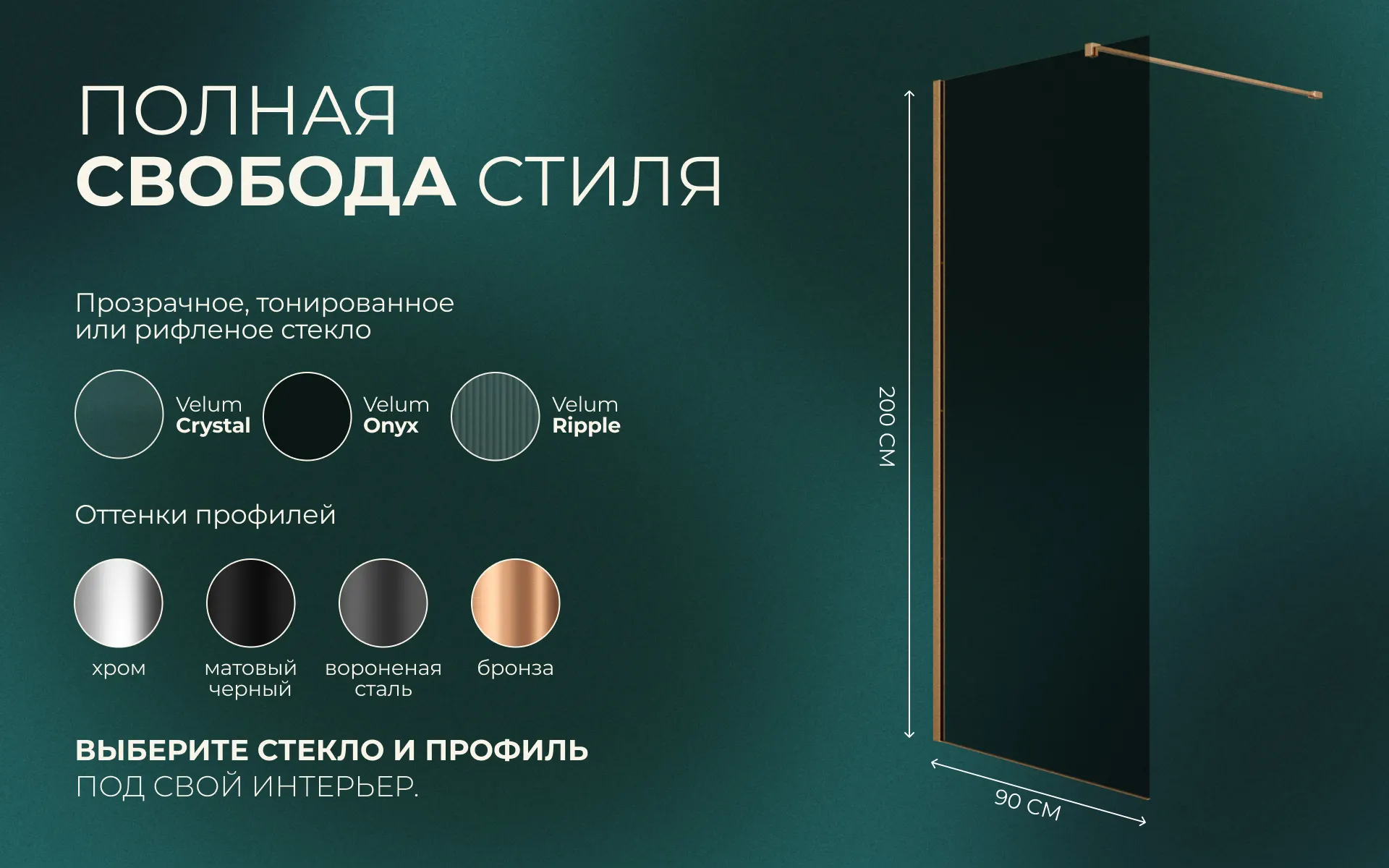 Перегородка душевая Walk In WI090TG0RB