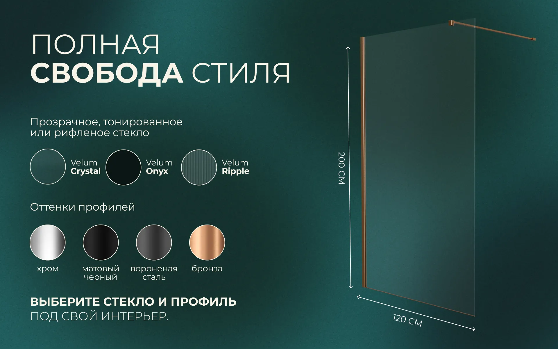 Перегородка душевая Walk In WI120CG0RB