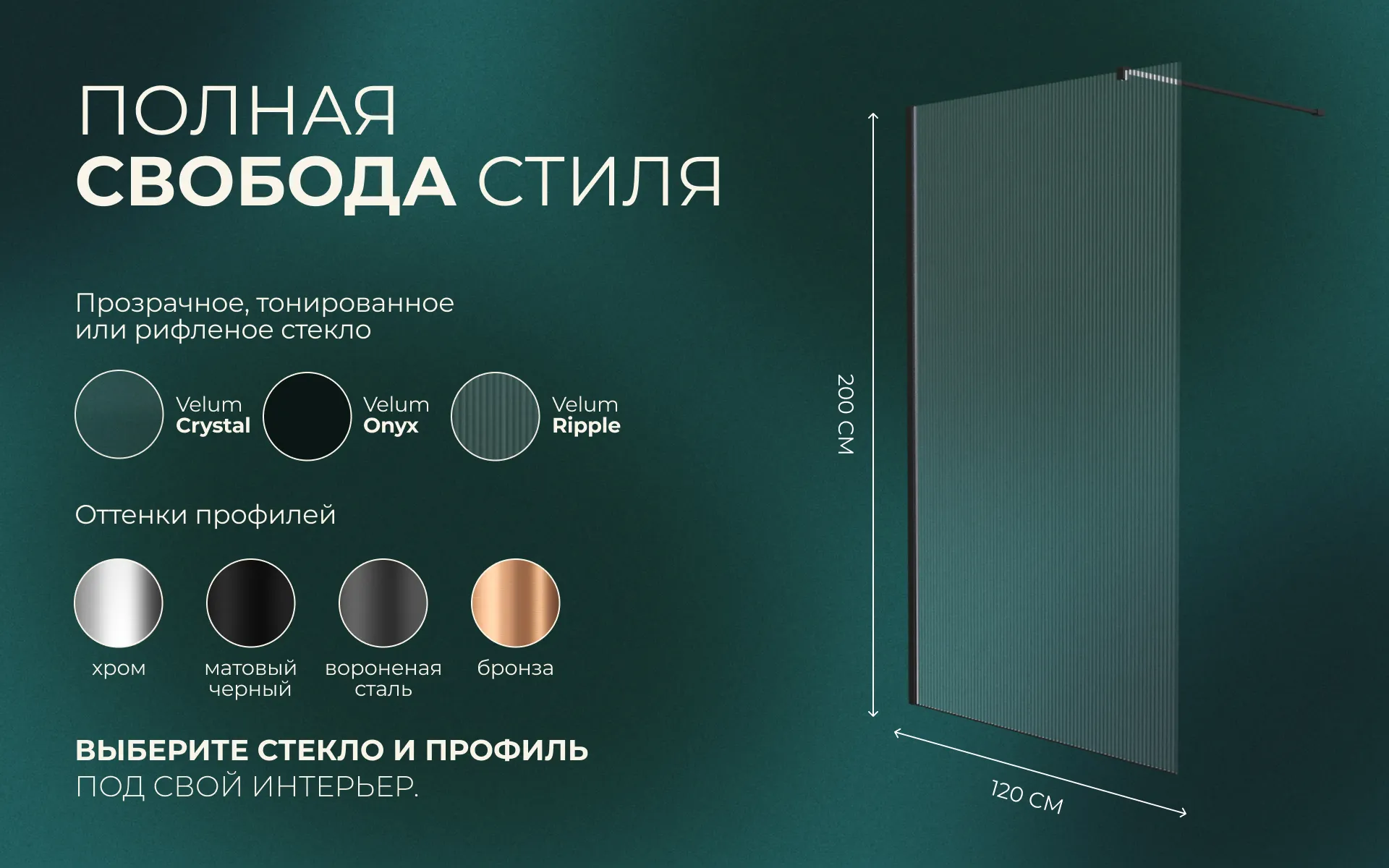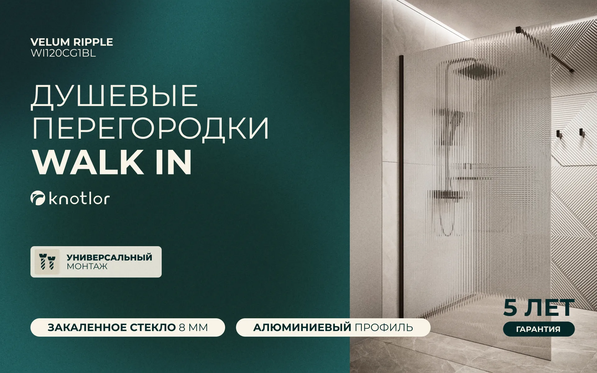 Перегородка душевая Walk In WI120CG1BL