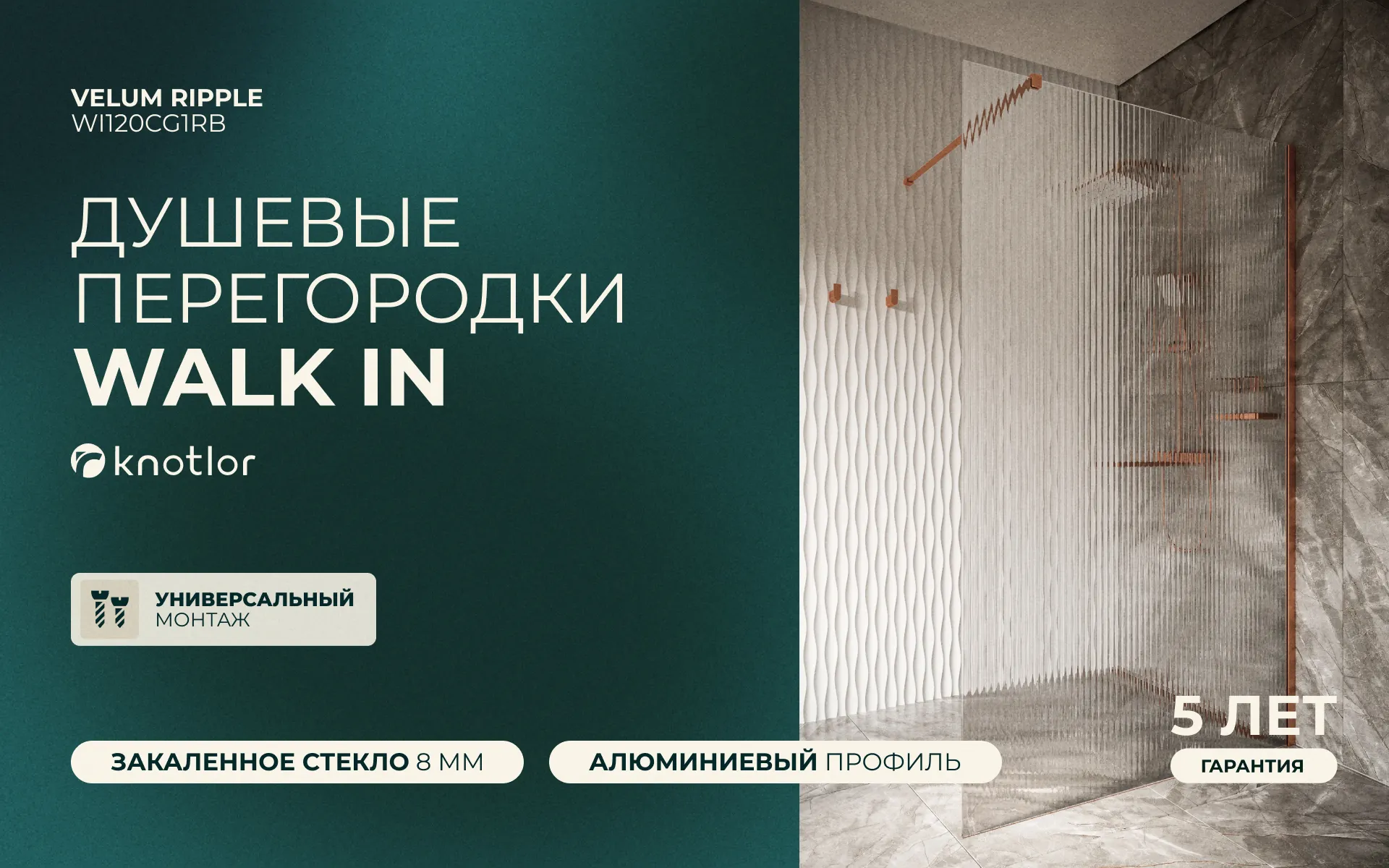 Перегородка душевая Walk In WI120CG1RB