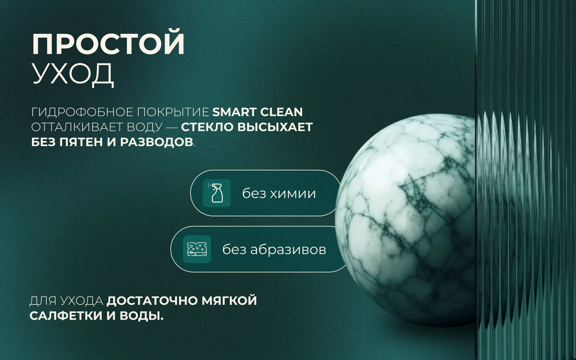 - Покрытие стекла: Smart Clean, одностороннее