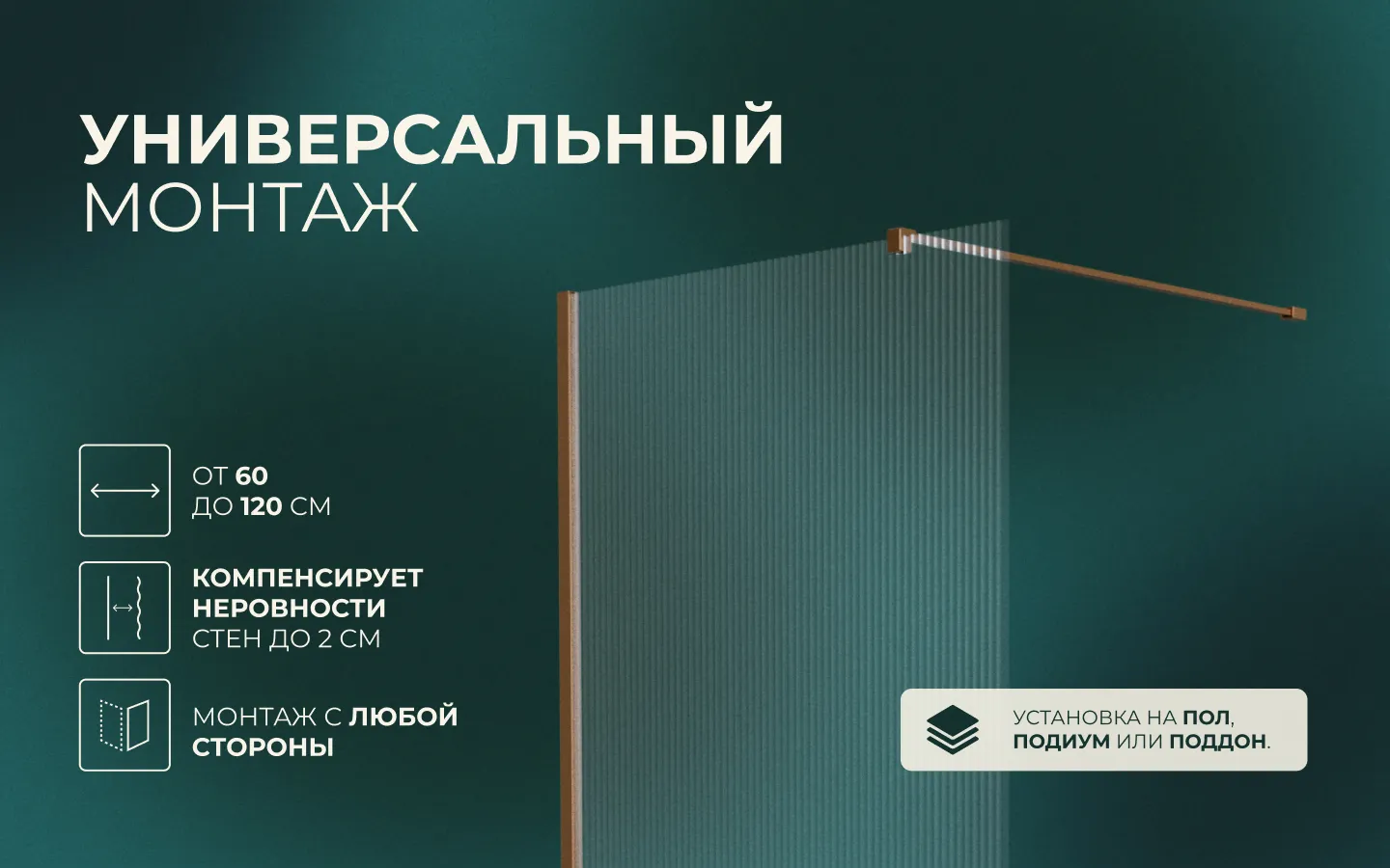 - Монтаж: пол, подиум, поддон