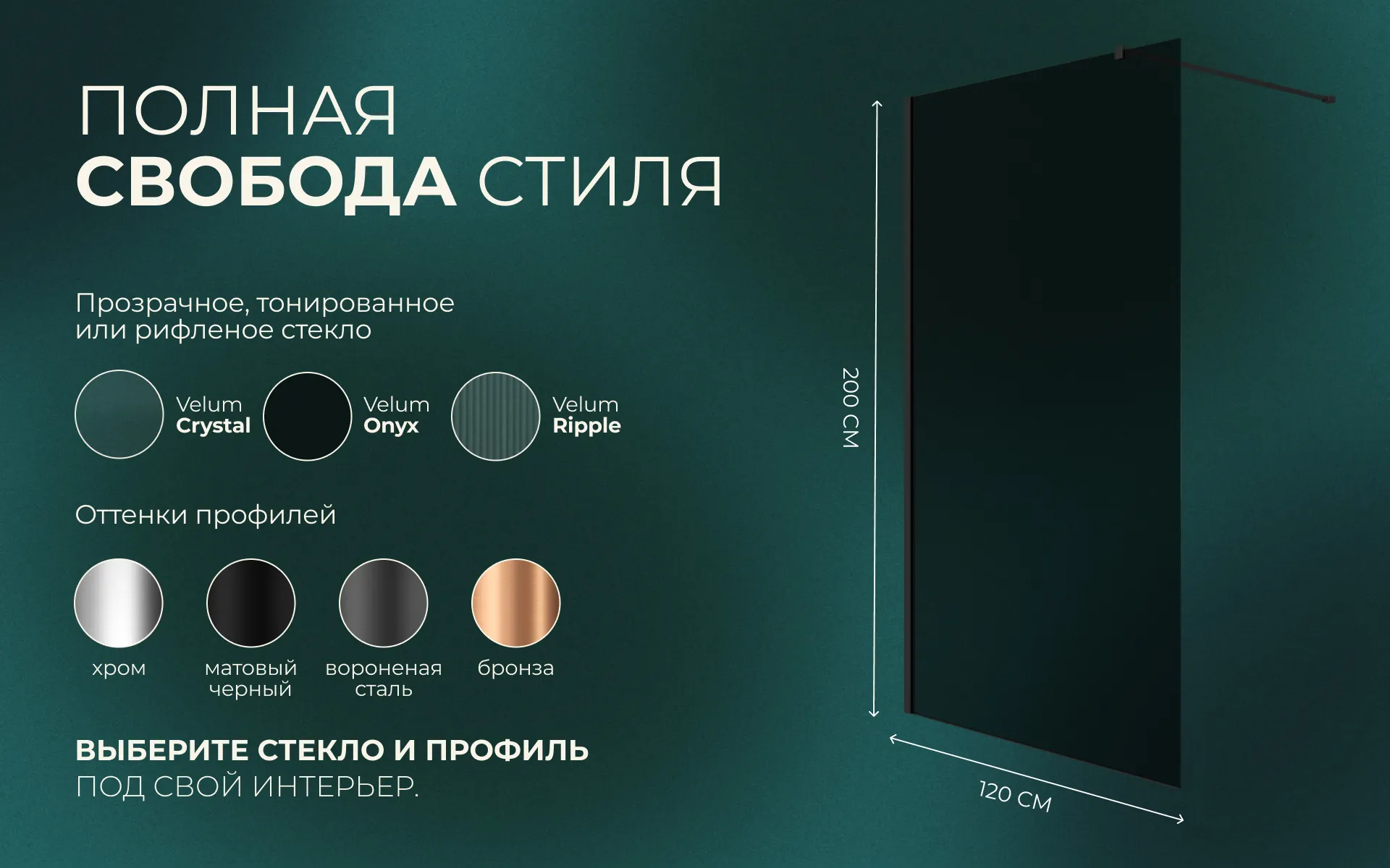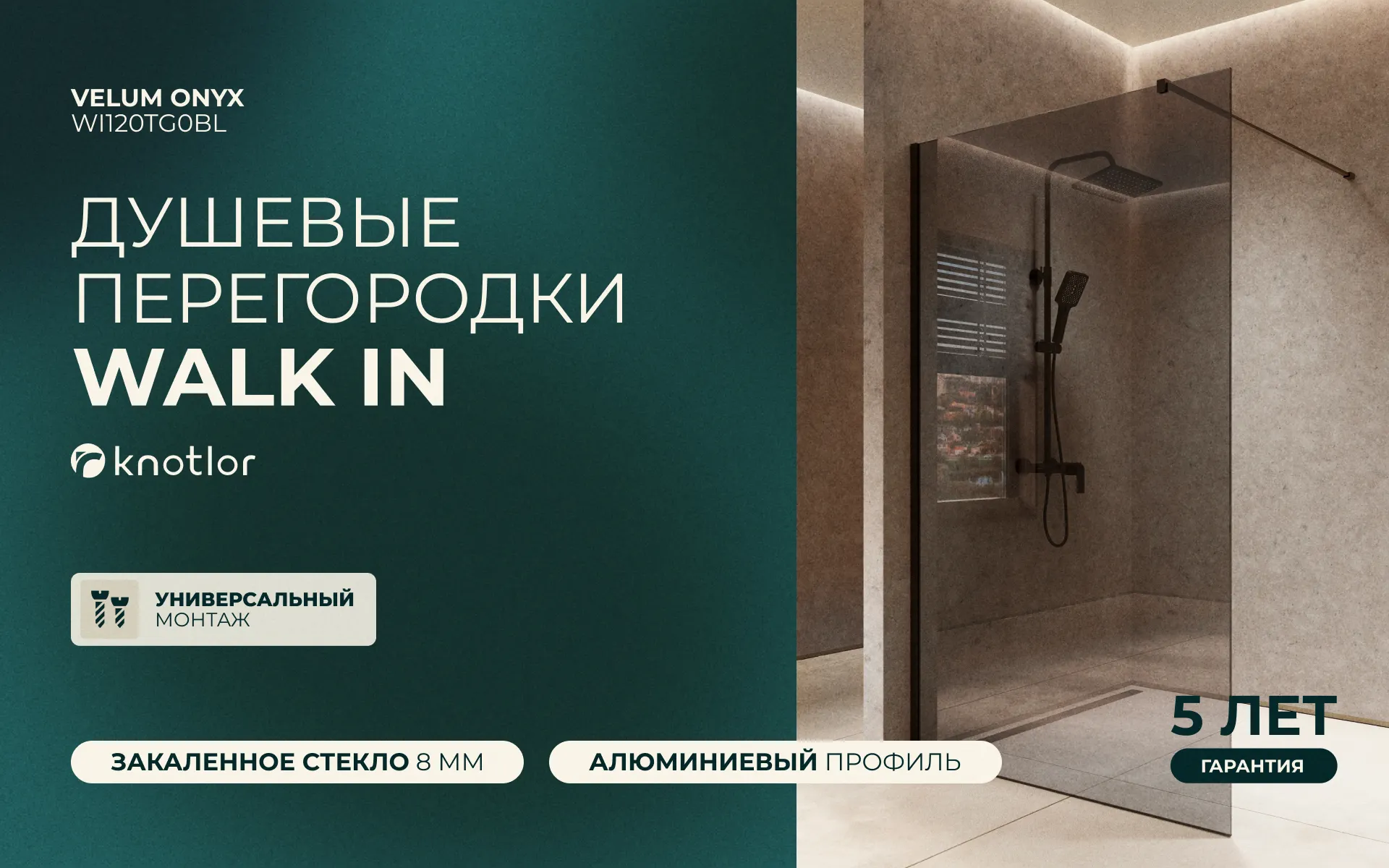 Перегородка душевая Walk In WI120TG0BL