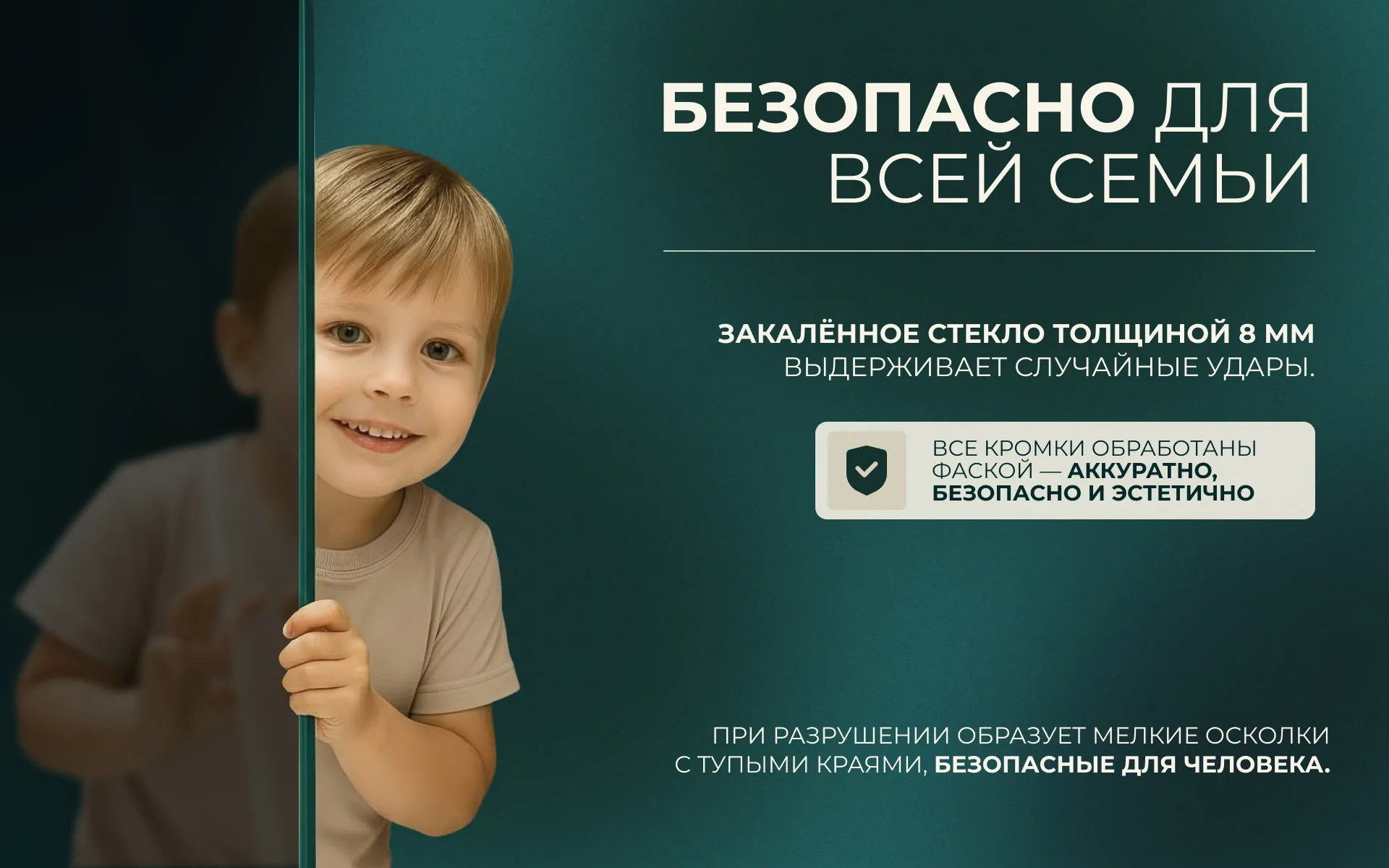 - Толщина стекла: 8 мм