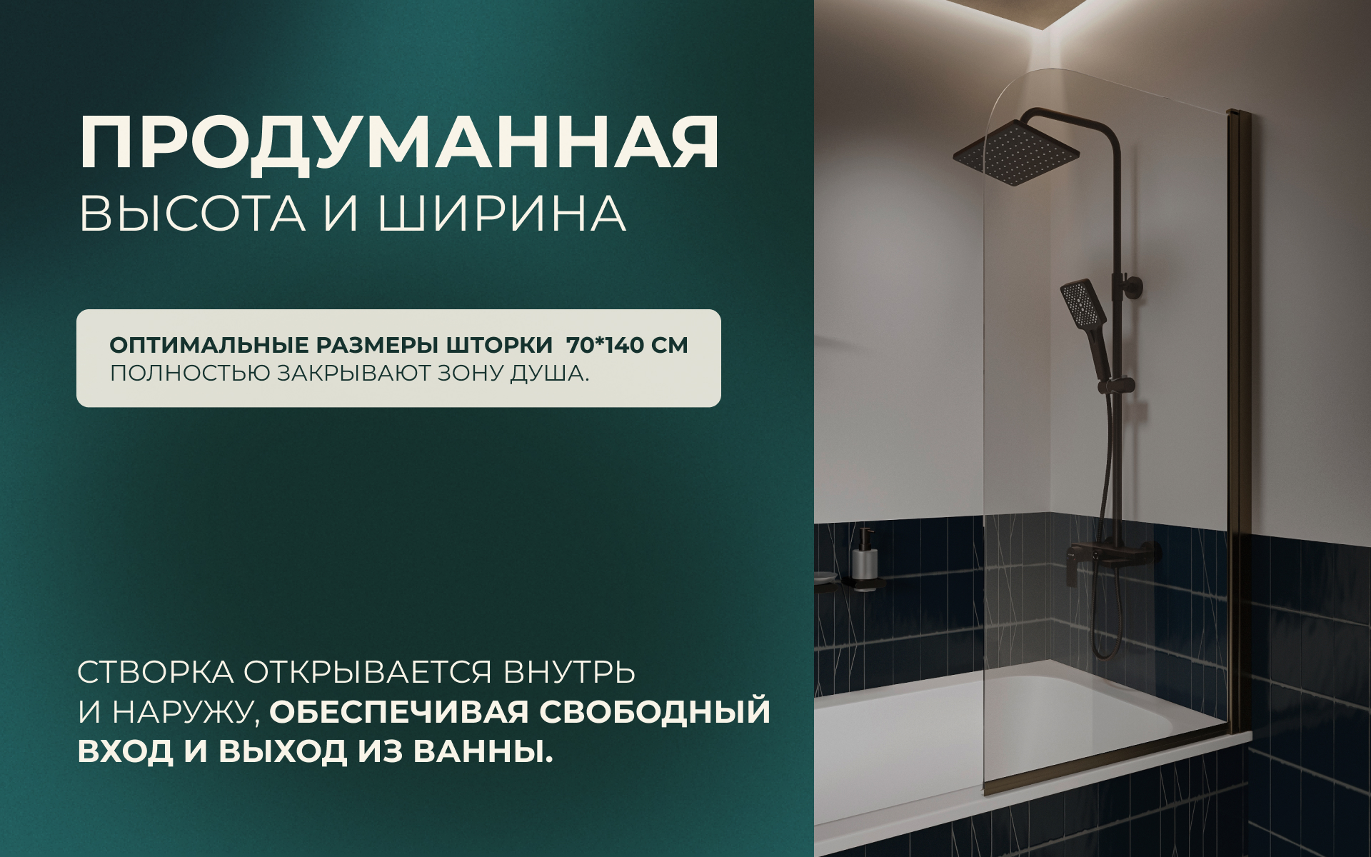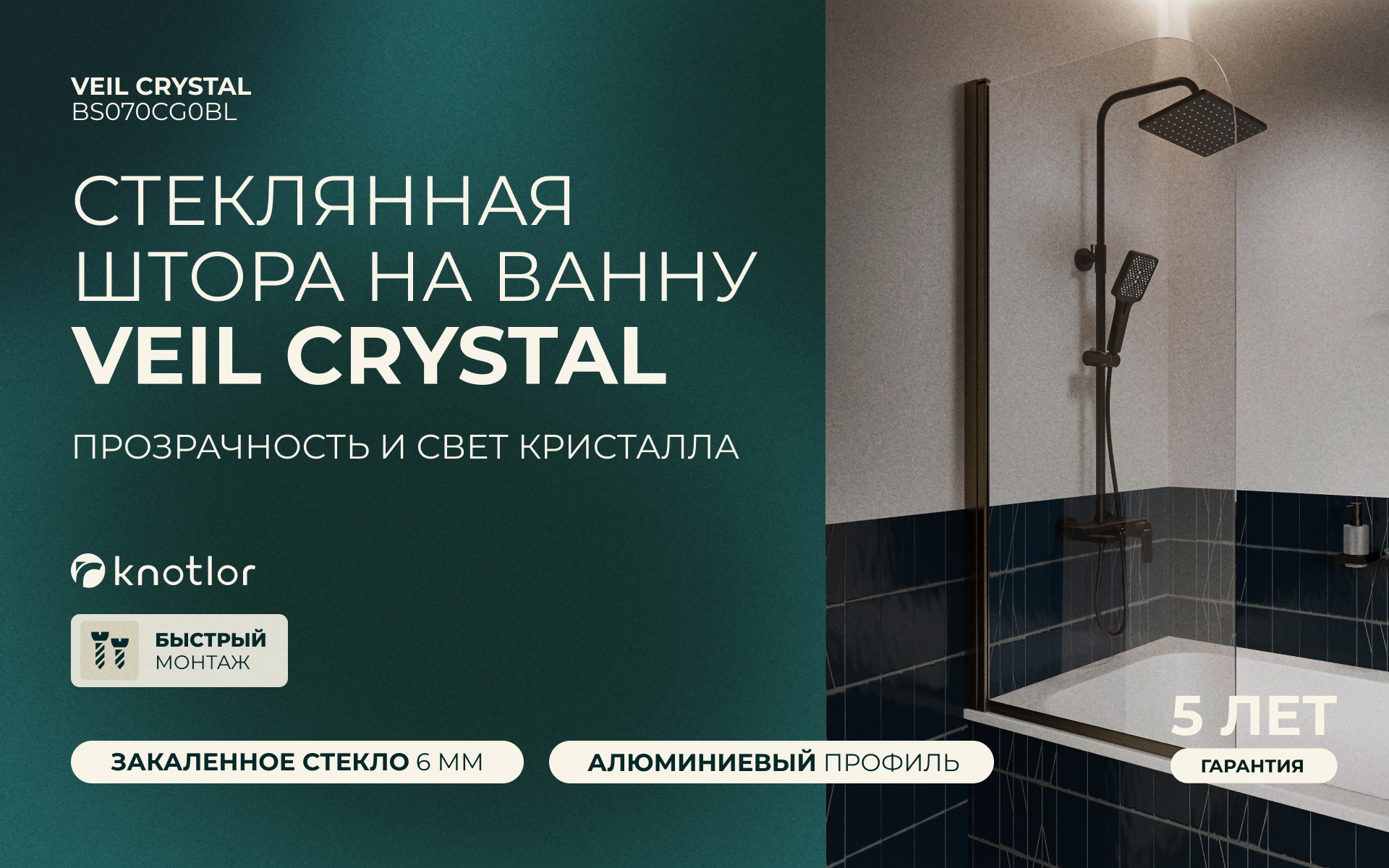 Штора стеклянная на ванну BS070CG0BL