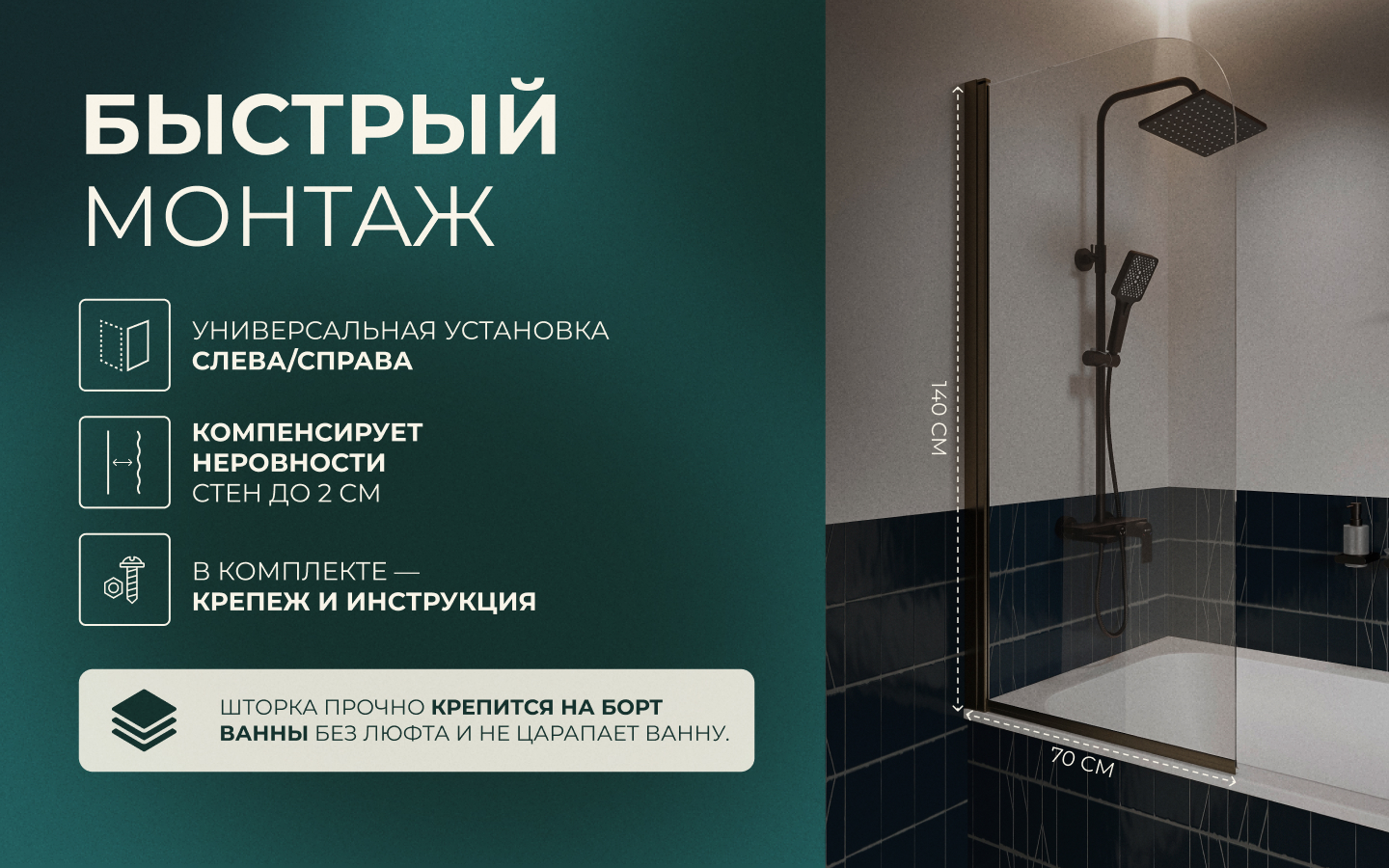 - Монтаж: борт ванны