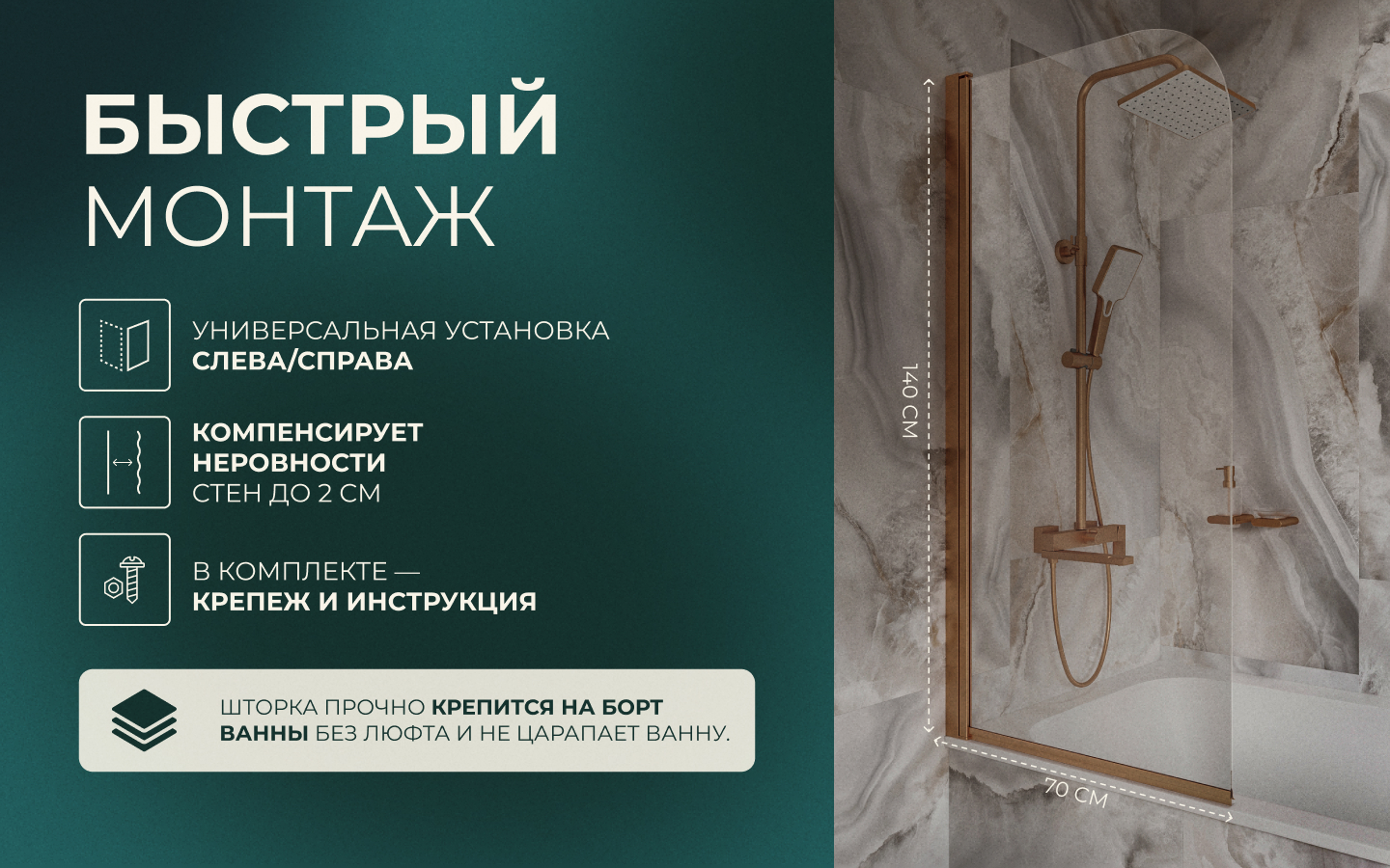 - Монтаж: борт ванны