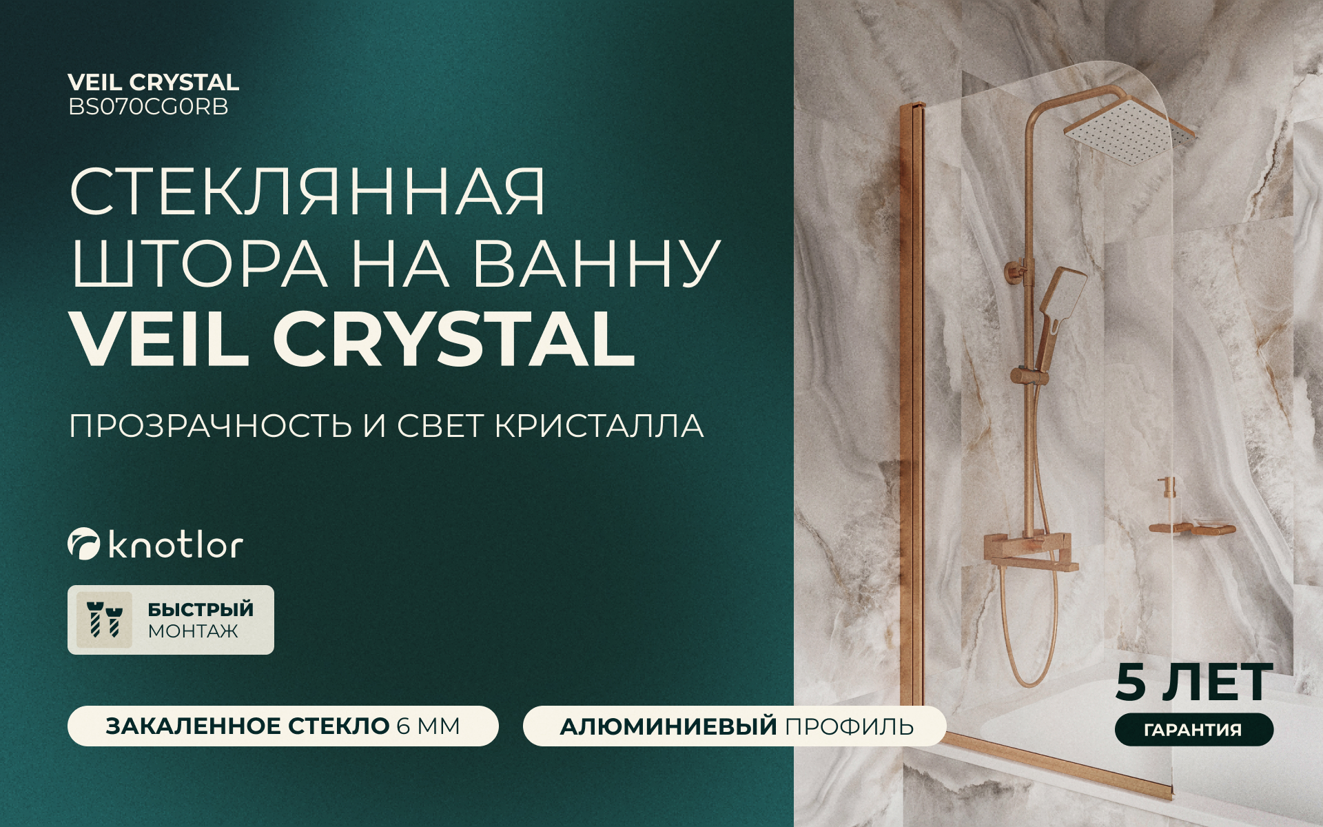 Штора стеклянная на ванну BS070CG0RB