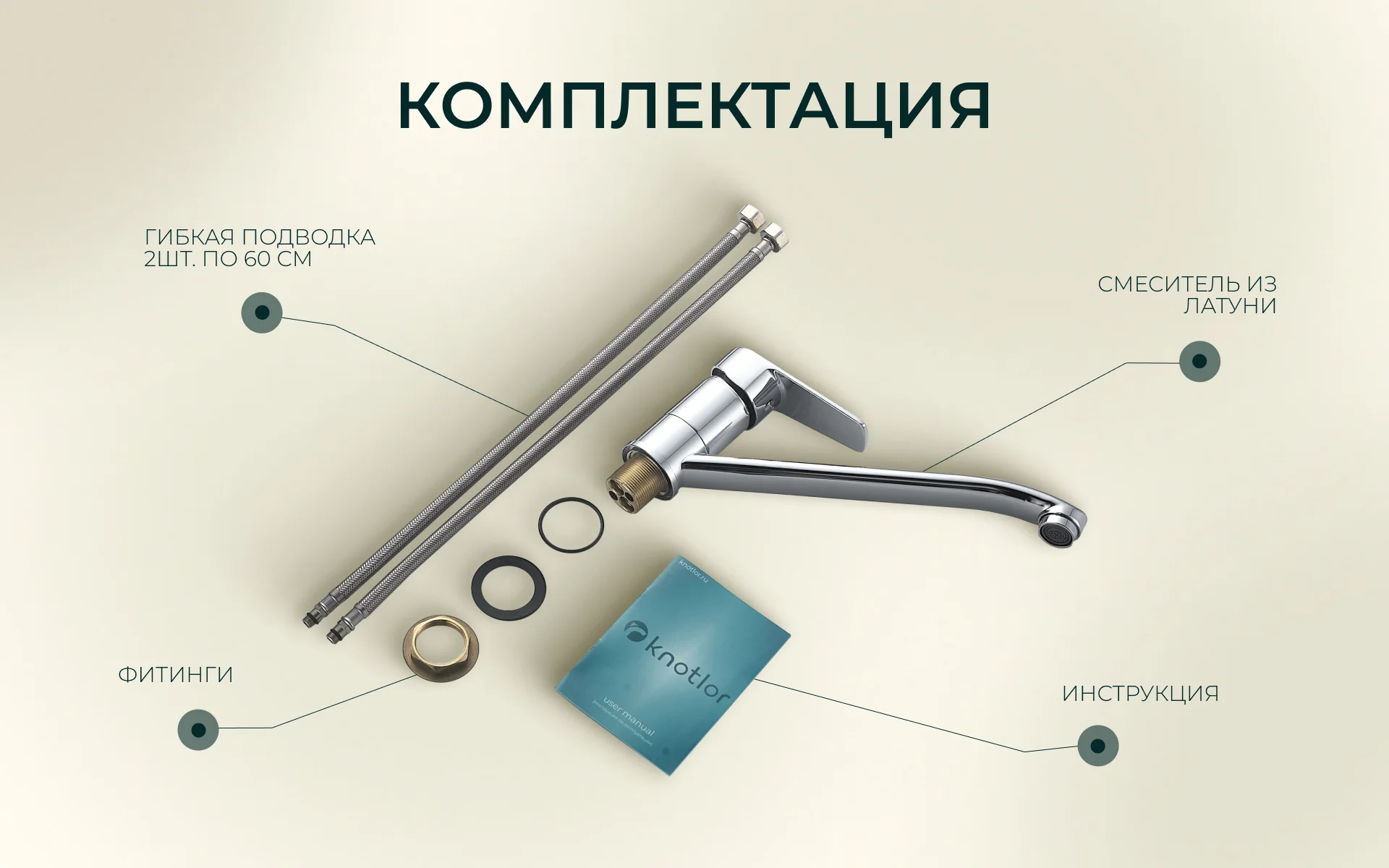 - Крепеж: Крепежная гайка, резиновые уплотнитель и прокладка