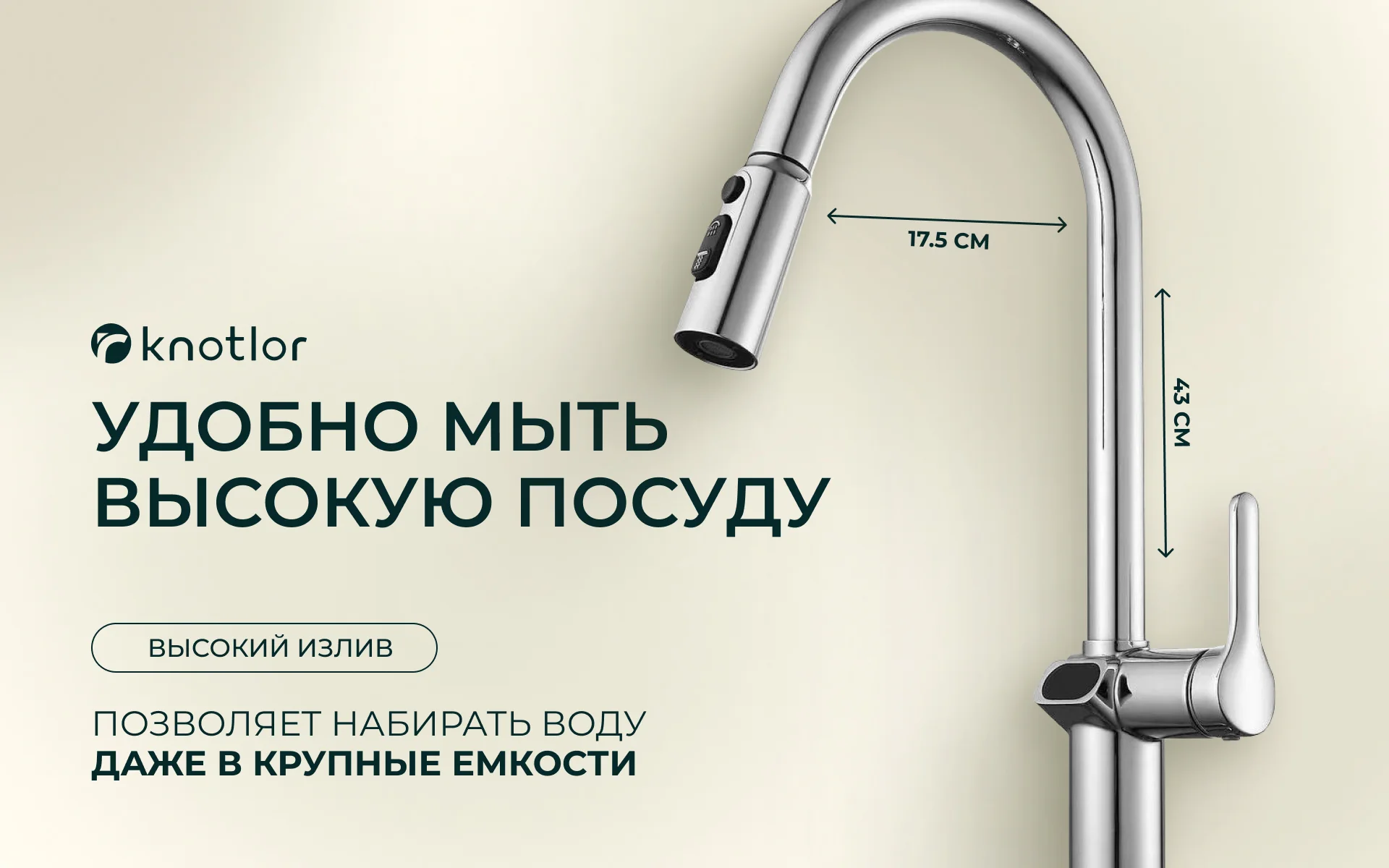 - Высота излива: 234 мм